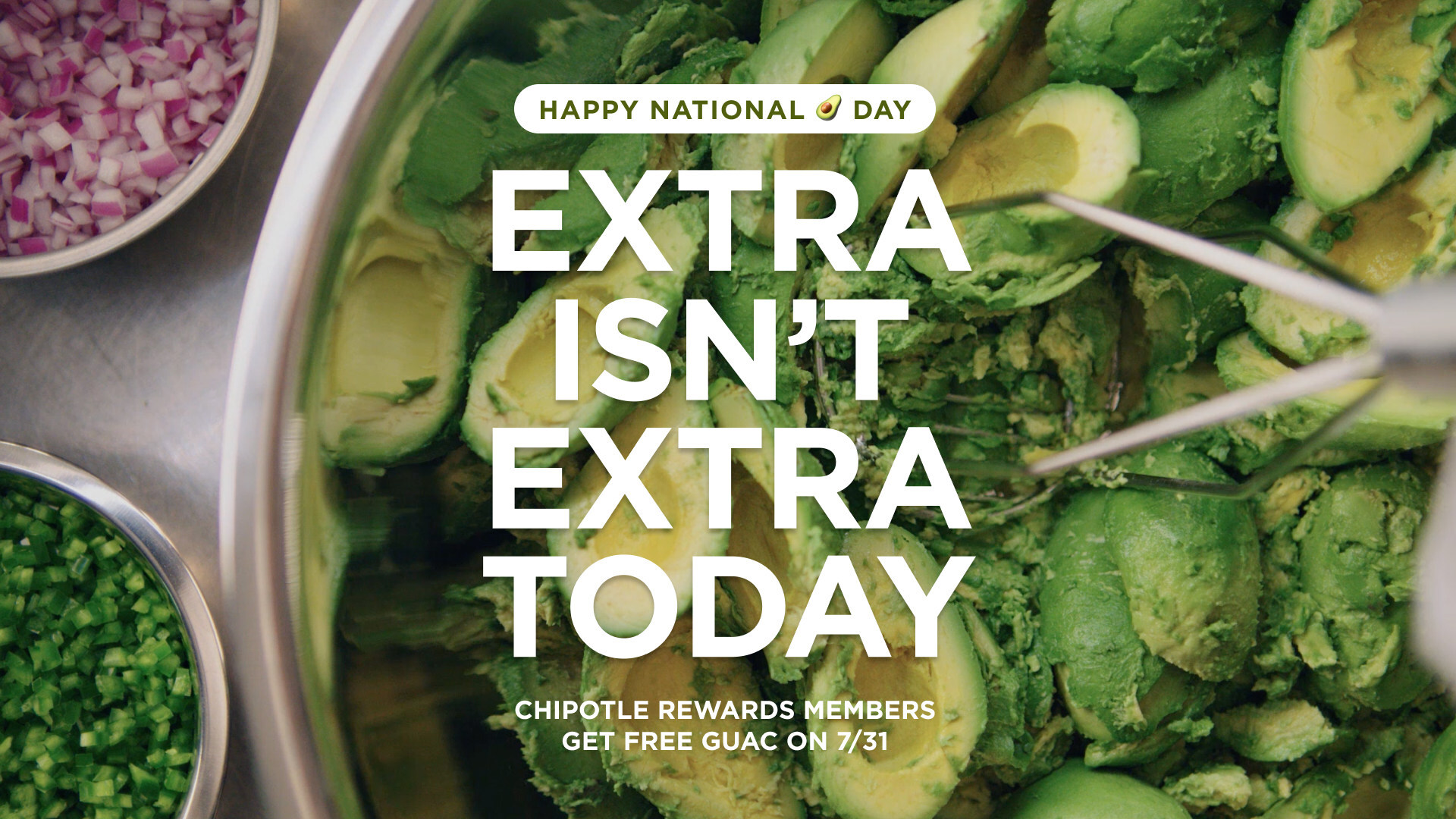 - Chipotle's National Avocado Day offers are giving guests more value than ever with the brand's biggest free guac drop in history