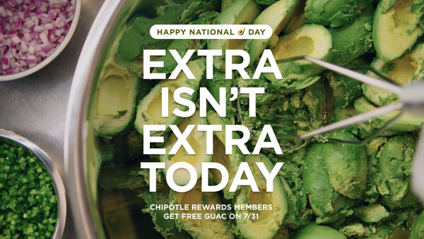 On National Avocado Day, July 31, all Chipotle Rewards members are winners and can enjoy a free side or topping of guac with promo code AVO2025 on the Chipotle app and Chipotle.com when they purchase a regular-priced entrée.**